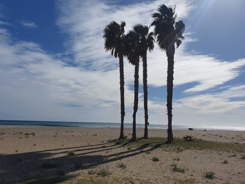 Als wir an dem Strand namens Playa de los Genoveses ankamen wussten wir, wieso dieser einer der Schönsten sein sollte – die Pflanzenwelt beeindruckte hier an diesem herrlichen Sandstrand. Kleine Steinbuchten, die vor dem Wind schützten, waren an einigen Stellen geschaffen worden. Einige Szenen aus verschiedenen Filmen sollen hier gedreht worden sein, u.a. wohl Lawrence of Arabia. Wir gingen den ganzen Strand entlang und machten auch vor einem Berg der dahinter begann nicht halt, denn es sollte noch einen zweiten Strand geben, der zu den Schönsten zählte und nur 2 km weiter südlich liegt – den Playa de Monsul, ein weiterer Hollywood Drehort u.a. für die Filme Indiana Jones, die unendliche Geschichte...