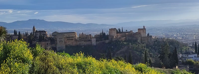 Nach dieser kleinen Stärkung ging es weiter durch das Albaicin Viertel den Berg hoch. Über etliche Treppen und durch malerische schmale Gässchen gelangten wir auf eine Freifläche mit großer Blumenwiese. Die Aussicht hier war schon toll, aber als wir dann immer weiter zur Kirche Saint Michael aufstiegen, eröffnete sich uns ein noch herrlicherer Blick: Ganz Granada lag uns zu Füßen, sogar die Alhambra hatten wir unter uns gelassen und der Blick darauf war noch besser als von unten.