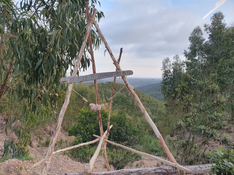 Trotz guter Beschilderung war es nicht einfach den richtigen Trail auszumachen, es gelang uns dann aber doch, nach ein paar mal verfahren und wieder umdrehen. Wir fuhren zum Teil durch den Eukalyptus- und zum Teil durch den Korkeichenwald. Mehrere gebaute Drops, kleine Sprünge und Anleger am Ende, fuhren wir problemlos. Wilde Hunde trafen wir hier zum Glück keine. Wir fuhren den Trail gleich nochmal, da er uns so viel Spaß gemacht hatte. Frustrierend war nur der E-Biker, der uns überholte und den Trail 3 x fuhr, in der Zeit, in der wir einmal hochtraten.