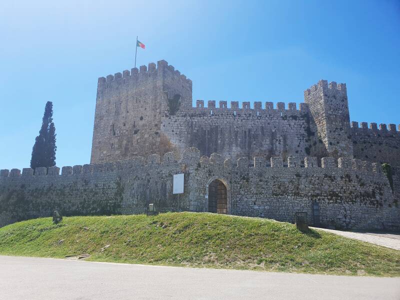 Am nächsten Tag beherzigten wir Fernandos Tipp und fuhren zum Schloss Montemor in Montemor-o-Velho. Es waren ausreichend Parkplätze davor vorhanden. Der Eintritt war kostenfrei und es wunderte uns schon, dass außer uns nur ein weiteres Auto dort stand. Nachdem wir durch das Burgtor getreten waren, standen wir in einem großen langen Burggarten. Dieser war rund um den inneren Teil der Burg angelegt worden. Steintreppen führten hinauf auf die äußere Burgmauer und ließen einen tollen Ausblick auf das Umland zu. Um die nächste Ecke gelangte man an der Touristeninformation vorbei auf eine große Wiese. In der Mitte der Anlage stand zudem noch eine kleine Kirche. Auch hier konnte man überall ringsherum über Treppen auf die Burgmauern steigen. Beim Spaziergang durch die Anlage fanden wir im hintersten Eck eine liebevoll hergerichtete Schaukel - unser persönliches Highlight der Burg. Ein paar Herzchen waren oben am Gestell, das aus Ästen gebaut worden war, angebracht worden. Kurz verfielen wir in eine kindliche Phase und schaukelten etwas. Inzwischen waren noch ein paar Jugendliche hergekommen - vermutlich um heimlich in den Nischen der Burg Alkohol zu trinken oder zu rauchen. Ein kleines Fotoshooting mit Krümel und Elma durfte bei unserem Besuch natürlich auch nicht fehlen. Ihr könnt die Bilder dazu auf ihrem Instagram Account ansehen --> Link.