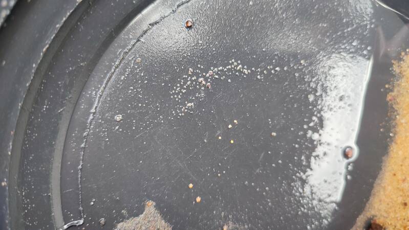 Nach vier Stunden ohne Fund gingen wir erstmal zurück zum Bulli und machten Kaffeepause. Die zweite Runde gingen die beiden nicht mehr so weit nach hinten und versuchten es in Bullinähe, direkt neben der Brücke. Tatsächlich kam ein Kontrolleur vorbei und schien zu checken, ob die Schürfer auch eine gültige Lizenz im Briefkasten hinterlegt hatten. Dieser stand direkt neben dem Parkplatz unter einem Holzunterstand. Einen Ausweis wollte er allerdings nicht sehen. Stattdessen sagte er den beiden, dass sie nur Gold finden würden, wenn sie mitten im Fluss tiefer herunter graben und das Material von dort waschen würden. Zusätzlich zeigte er noch auf eine bestimmte Stelle. Leider hatten wir keine Gummistiefel dabei, deshalb blieb nur Hose hochkrempeln und barfuß ins Wasser steigen (und das bei nur 10-15 Grad). Marilyn kochte währenddessen schon mal etwas. Tatsächlich fanden die beiden durch den Tipp ihre ersten Goldflocken. Sie waren zwar nicht groß, aber immerhin. Voll im Goldrausch schürften die zwei sogar nach dem Essen noch weiter, das letzte Tageslicht voll ausnutzend. Nachdem gegen 22:30 Uhr wieder alles fahrfertig war, fuhren wir zurück nach Helmsdale, um das Equipment wieder abzugeben und im Ort zu schlafen. Wir sollten es einfach in den Hinterhof des Museums stellen, denn vor Ort war natürlich keiner mehr. Auf dem Weg dorthin erwachte die Natur. Wir sahen durch die Dunkelheit Schleiereulen, Herden von Hirschen und Rehen (geschätzte 70-100 Tiere), einen Igel und sogar eine Maus. Überall leuchteten Augen auf, während wir vorbeifuhren. Das ganze Tal war voller Tiere, die sich im Schutz der Dunkelheit herauswagten. Dementsprechend langsam fuhren wir, um kein Tier zu verletzten. So viel Rotwild hatten wir noch nie auf einem Haufen gesehen, nicht einmal in einem Wildpark. Es war die richtige Entscheidung gewesen noch in den Ort zurückzufahren, denn sonst hätten wir das nicht erlebt.