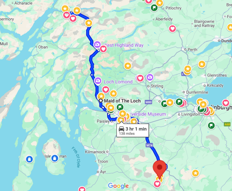 Als wir Glencoe wieder gen Süden verließen, wurde der Sonnenschein immer mehr von tristem bewölktem Wetter abgelöst. Wir steuerten Loch Lomond an, den See an dem wir in unserer vierten Nacht in Schottland bereits gestanden hatten. Mal wieder war uns Sonnenschein an diesem Ort verwehrt. Dafür entdeckten wir dieses Mal beim Spazierengehen den kleinen Steinstrand am See mit Kajakverleih, einen hübschen Park direkt daneben und eine kleine Einkaufsmeile am Wasser entlang. Sogar ein kleiner Rummel war davor aufgebaut worden. In einem Schuhgeschäft kaufte sich Marilyn ein paar neue Wanderschuhe, da die alten schon sehr über ihrer Zeit waren. Benji blieb relativ cool trotz des regen Trubels und durfte sogar mit ins Schuhgeschäft hinein. Dort wartete er mehr oder weniger geduldig bis wir fertig waren. Am Ende ging es durch den Park, der zu Benjis Freude voller Eichhörnchen und Hasen war, wieder zurück zum Bulli.