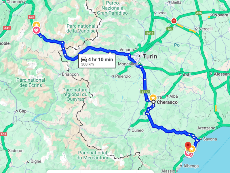 Am anderen Ende des Tunnels in Italien hangen die Wolken tief und die Berge wurden nahezu von ihnen verschluckt. Nach weiteren zwei Stunden Fahrt, verbrachten wir die Nacht im kleinen italienischen Ort Cherasco auf dem Dorfparkplatz, auf dem Camper sogar offiziell erlaubt waren. Dort beschlossen wir als nächstes Finale Ligure anzusteuern, um einen etwas längeren Zwischenstopp dort einzulegen.